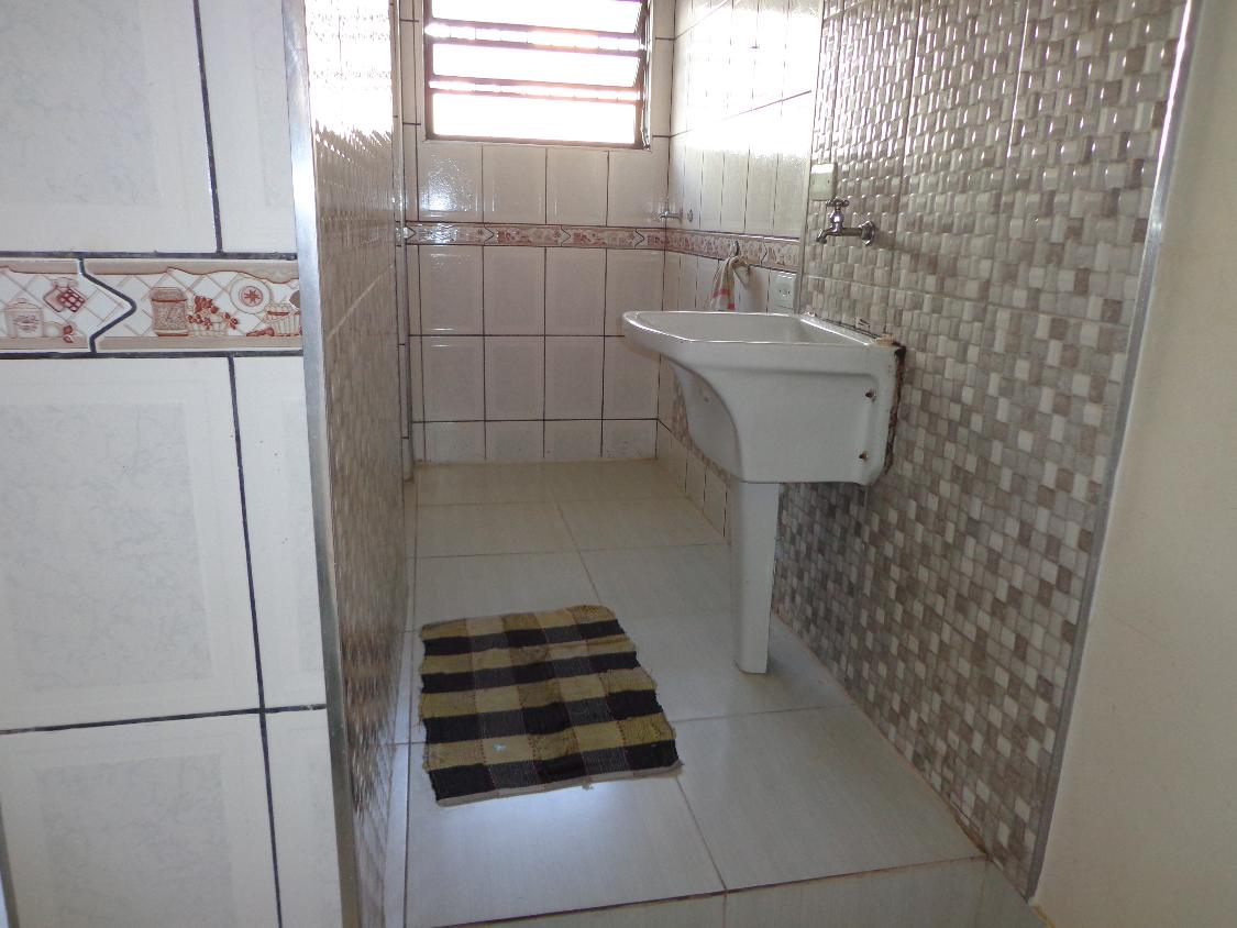 O imovel possui 2 dormitorios, sala, cozinha com pia em alvenaria, banheiro com box de vidro e chuveiro eletrico, alem de area de servico. O piso e em ceramica, o que facilita a limpeza e manutencao do dia a dia. Na entrada principal ha uma varanda que complementa o espaco do imovel.