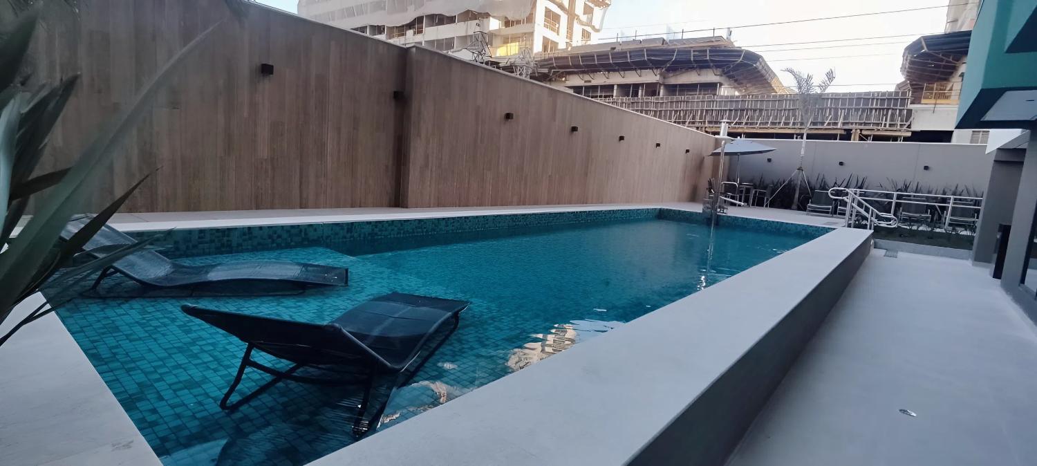 O condominio oferece estrutura completa com piscina, academia, lavanderia, salao de festas, portaria e elevador.