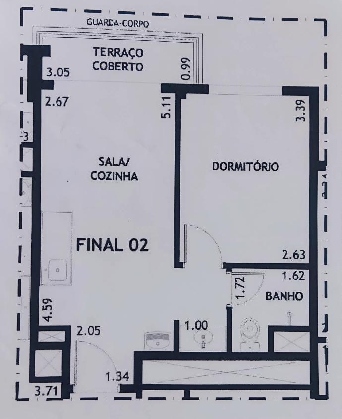 O imovel conta com 31m2 bem distribuidos, 1 dormitorio, banheiro, varanda e ambientes funcionais, ideal para quem busca praticidade no dia a dia.