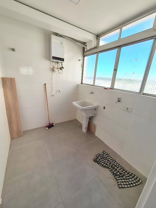 Sao 2 dormitorios com armarios embutidos, sendo 1 com ventilador de teto, sem suites. O apartamento possui 3 banheiros, sendo 1 lavabo na sala e 1 banheiro de servico na lavanderia, alem de quarto de servico/despensa, area de servico, aquecimento a gas, chuveiro a gas, piso de taco, telas de protecao e 2 vagas de garagem cobertas.