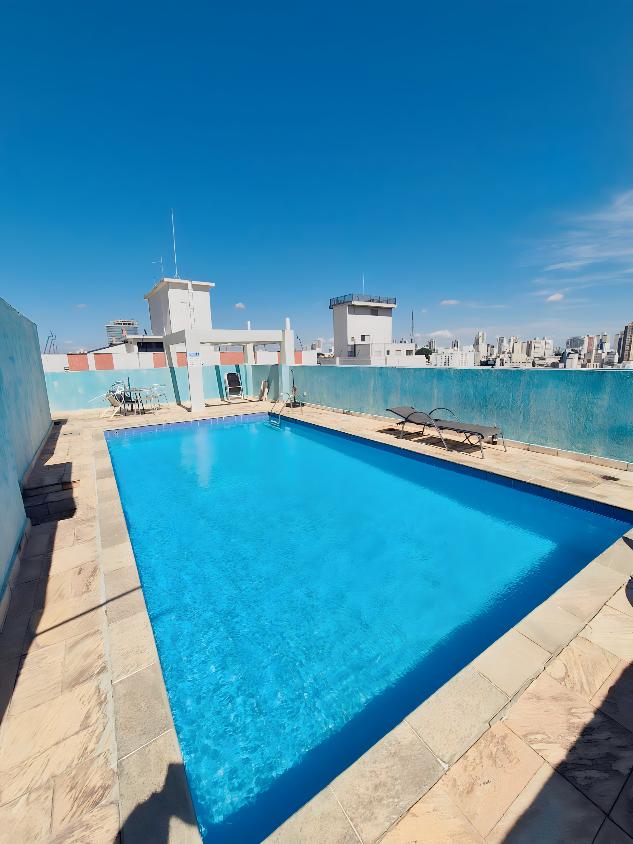 O condominio possui 15 andares, 2 elevadores, gas encanado, jardim, piscina compartilhada na cobertura, salao de festas e portaria 24 horas.