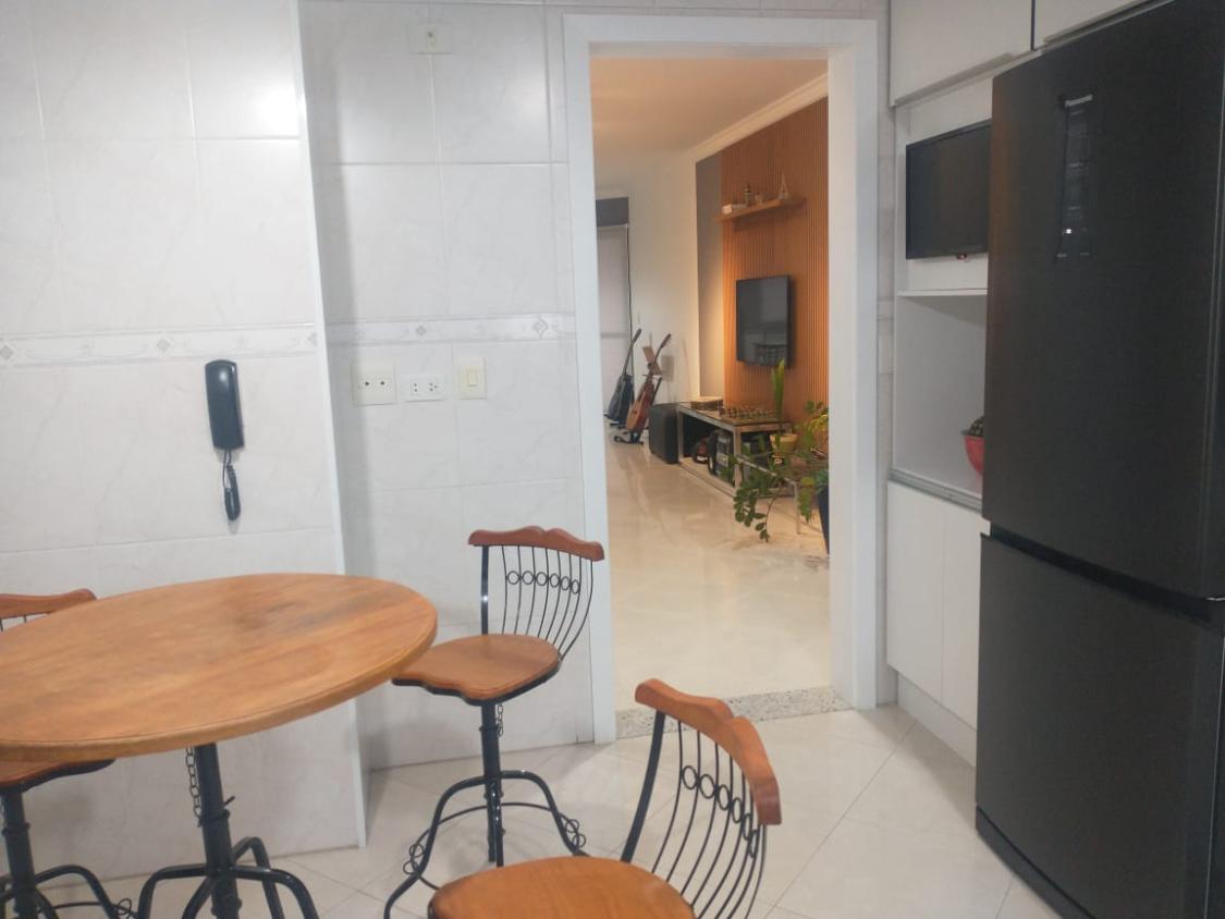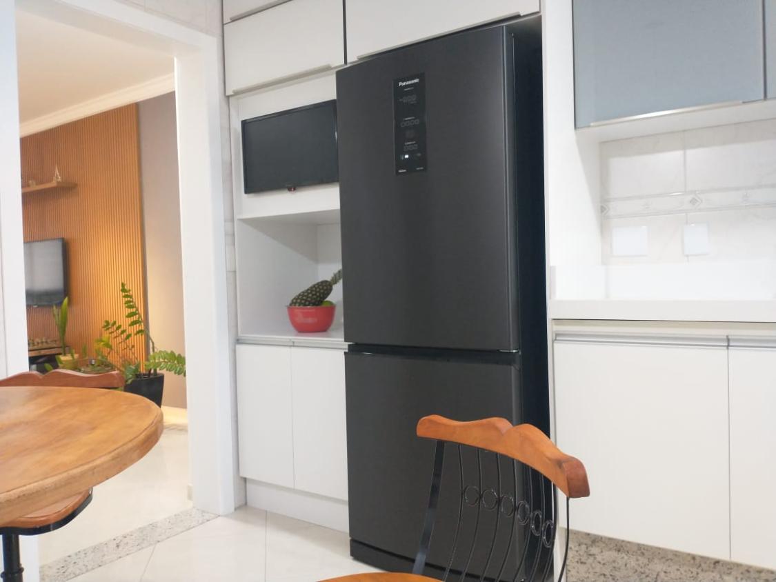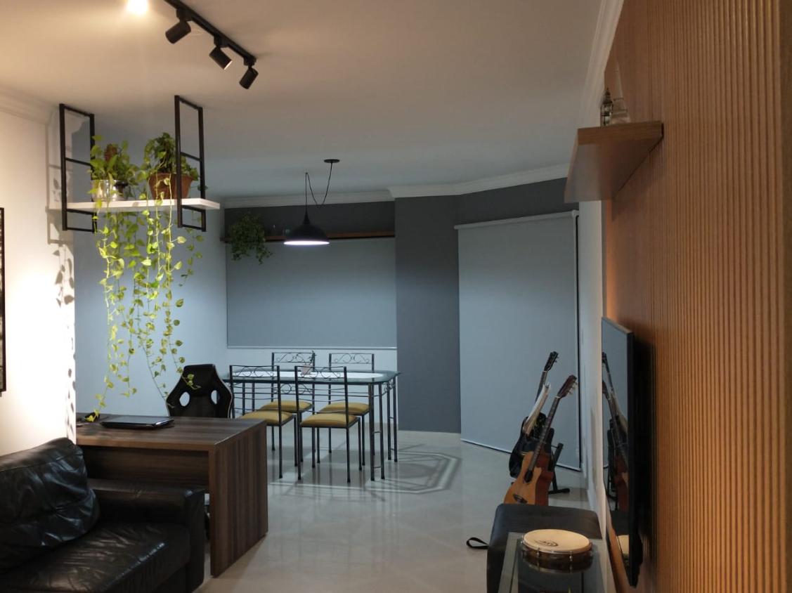 A sala para três ambientes é espaçosa e integrada à sacada com churrasqueira a carvão, perfeita para momentos de lazer e convivência. O apartamento também possui varanda gourmet, lavabo, cozinha funcional e área de serviço.