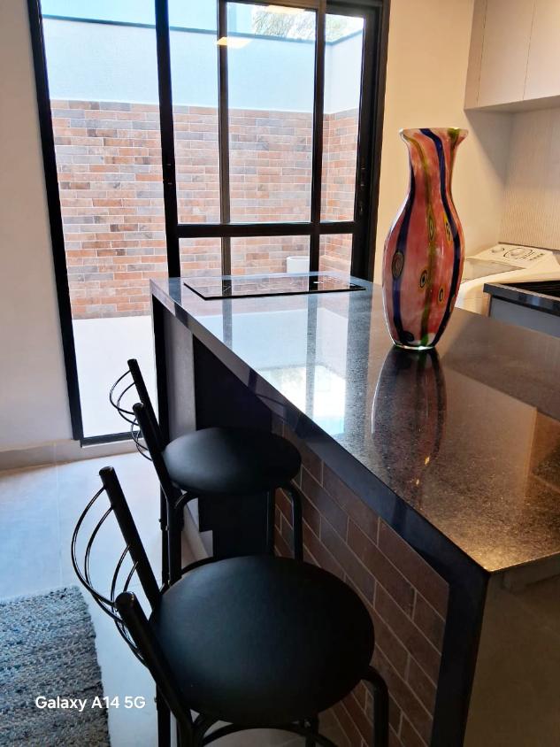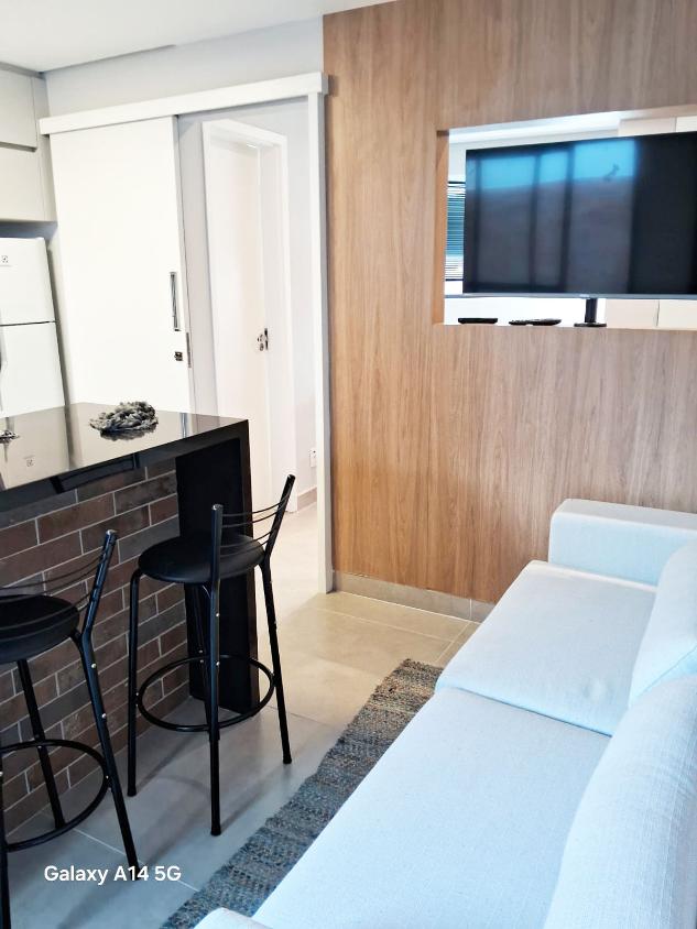 O imovel conta com 1 dormitorio integrado, sala, cozinha, banheiro e vaga de garagem coberta, com ambientes bem distribuidos e mobiliacao moderna, pronto para morar.